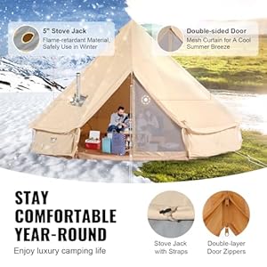 VEVOR-Canvas-Bell-Tent-4-Seasons-5-m164-ft-Yurt-Tent-Canvas-Tent-for-Camping-with-Stove-Jack-Breathable-Tent-Holds-up-to-8-People-Family-Camping-Outdoor-Hunting-Party
